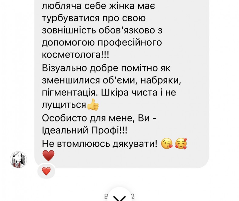 Рекомендую, разом вже понад 6 років. Робили різні процедури, ( мезо, ботом, ліполітики, загальний ухід). Все на вищому рівні, як майстер так і препарати . Праця на результат. Рада що найшла свого косметолога.