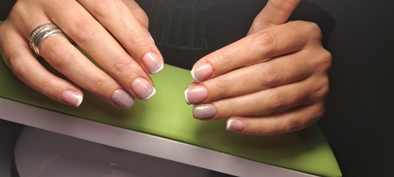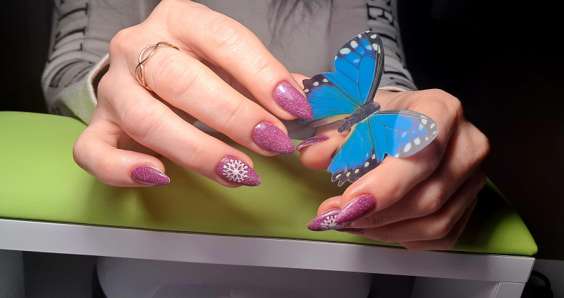 манікюр з гліттером, рожевий манікюр, манікюр акваріум, малиновий манікюр, короткі нігті