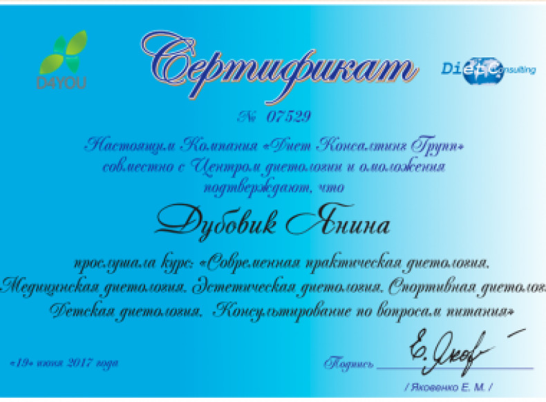 Практикуючий лікар-дієтолог, сімейний лікар. В сфері медицині з 2004 року. Онлайн та офлайн консультації. Складаю індивідуальні меню. Лікар дієтолог є експертом щодо харчових продуктів і харчування при захворюваннях. Лікар- дієтолог керується чинним законодавством України про охорону здоров'я. Організовує застосування лікувального й лікувально- профілактичного харчування. Консультує хворих із питань раціонального лікувально- профілактичного й дієтичного харчування. Дотримується принципів медичної деонтології. Планує...