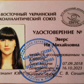 Психолог, психотерапевт в методі «Позитивна та транскультуральна психотерапія» (пройдено 3 роки навчання).