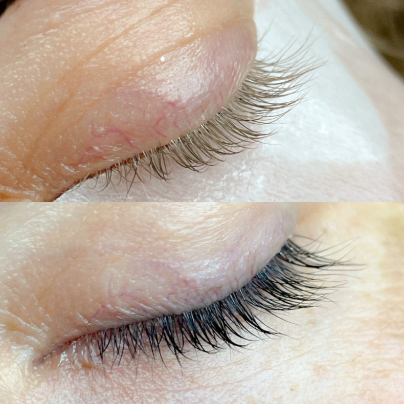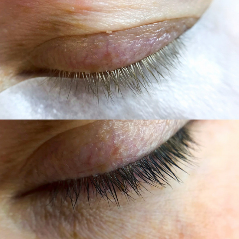 Фарбування вій фарбою. Тримається від 6 до 14 днів. Фарбування вій у чорний колір.