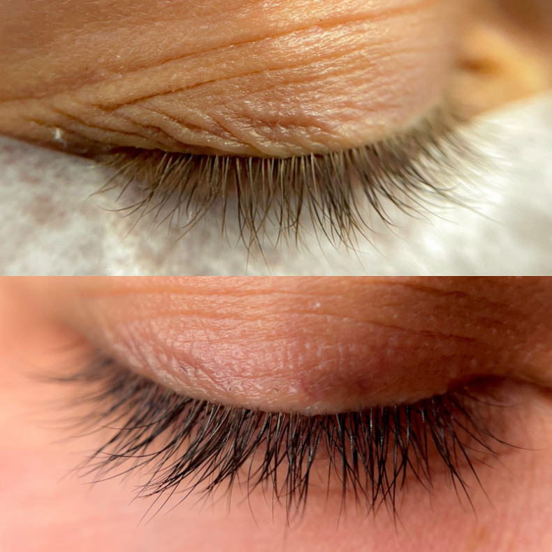Фарбування вій фарбою. Використовую стійку італійську чорну фарбу inlei. Ефект три тижні.