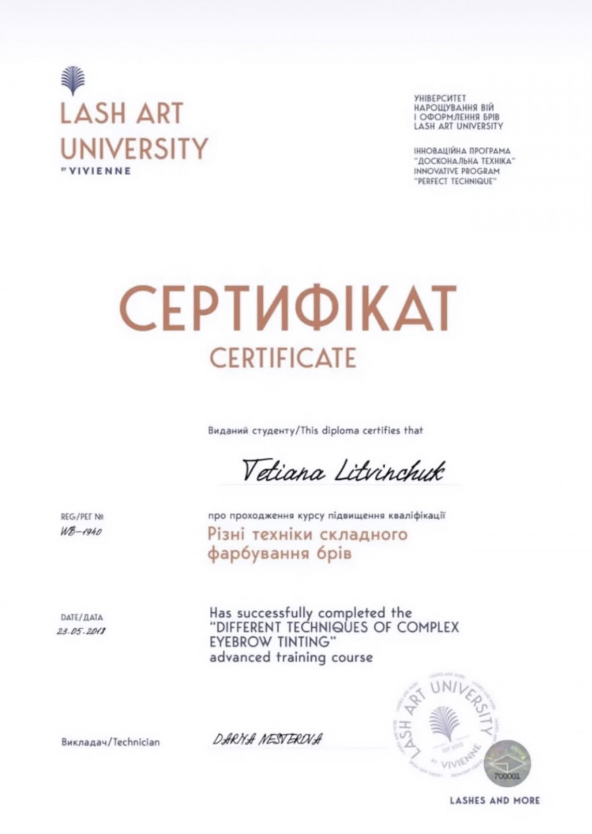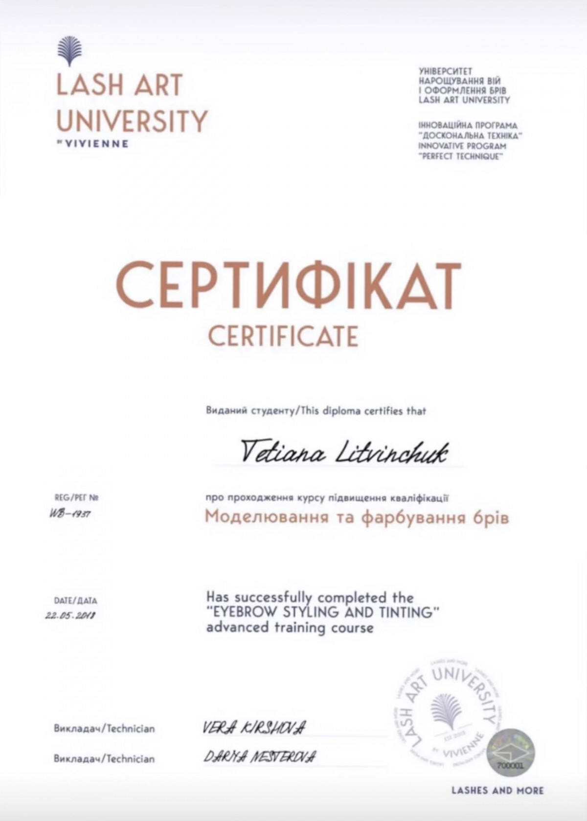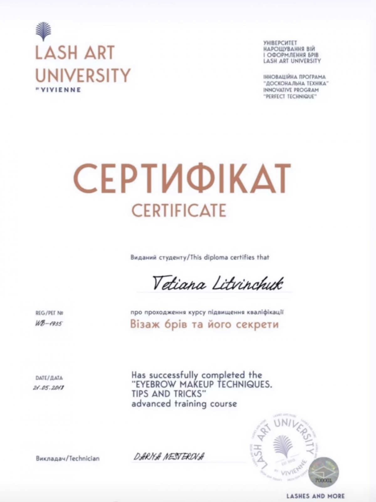 Основна спеціальність: Майстер перманентного макіяжу