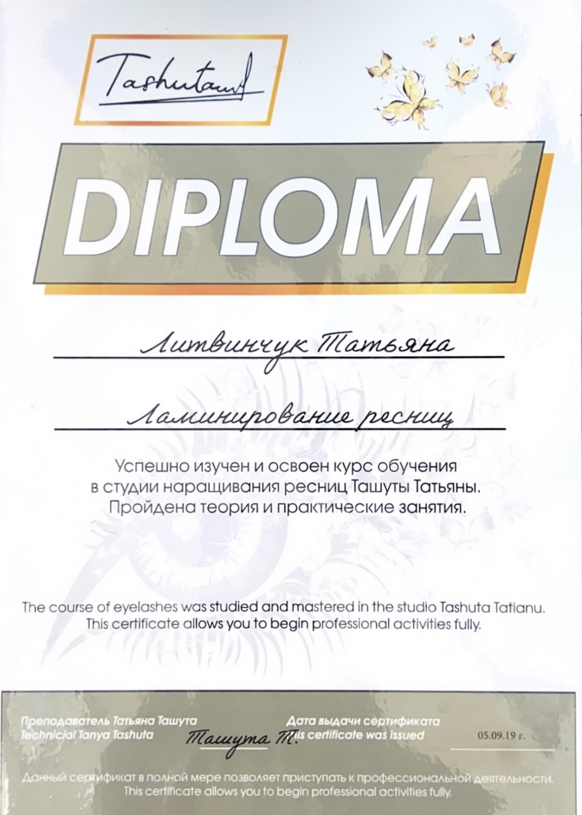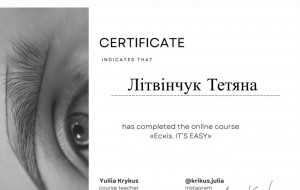 Дипломований спеціаліст. Більше 35 сертифікатів по підвищенню рівня знань.