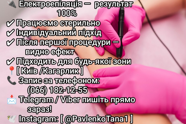 | Електроепіляція | 10 грн. / 1 хв |