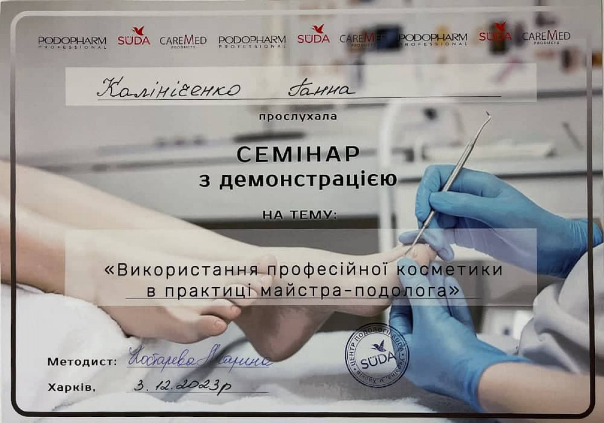 Довго страждала від тріщин на п’ятах, вони боліли й заважали нормально ходити. Вирішила звернутися до подолога, і це було найкраще рішення. Анна дуже уважна, працює акуратно та професійно. Під час процедури мені було комфортно, жодного болю, лише відчуття турботи й полегшення. Уже після першого сеансу тріщини стали менш помітними, шкіра м’яка й доглянута. Тепер ходжу без дискомфорту й із задоволенням рекомендую цей кабінет усім жінкам, які мають подібну проблему.