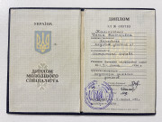 Диплом ЗД 003783. Выдан 04.07.1994. Харківське медичне училище №1
