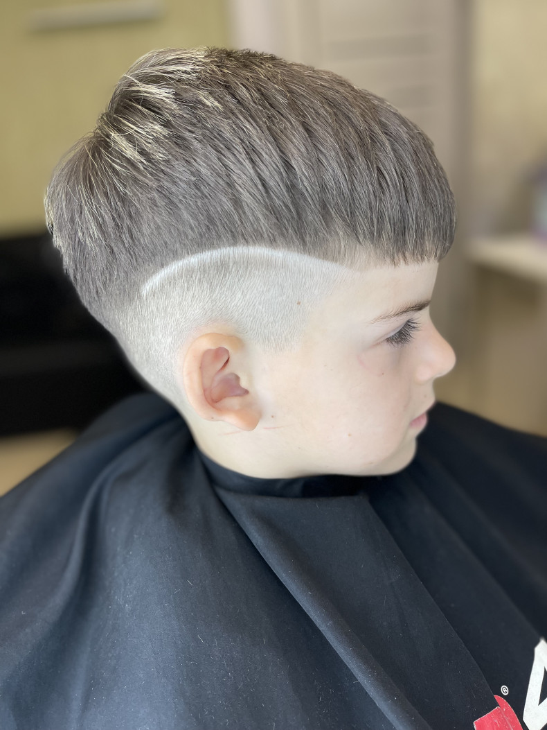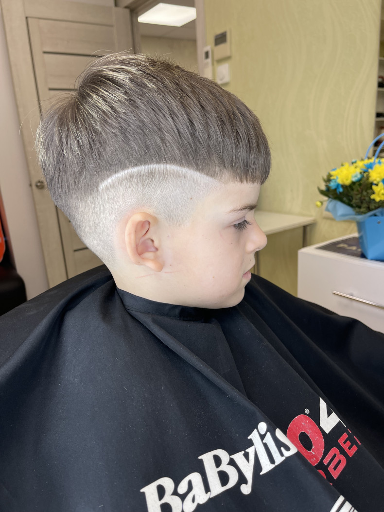 Детская стрижка выполнена машинкой+ножницы, а также визуал со стороны в виде полоски по просьбе клиента, перед стрижкой за месяц выронили мелирование волос на фото видно, также можно выполнить окрашивание в разные цвета, при желании можно выполнить пилинг волос.