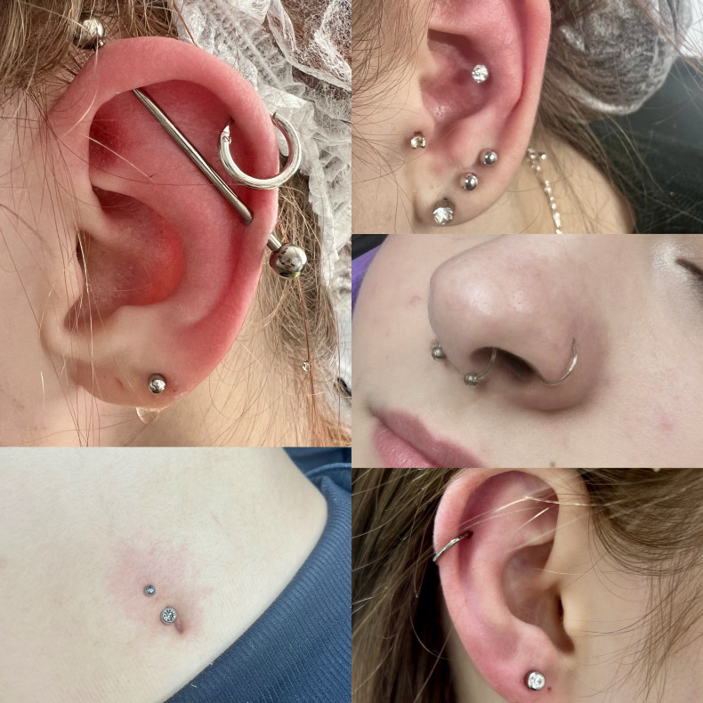 Прокол мочок вуха пістолетом (сережки і пістолет CAFLON Великобритания) Швидко, стерильно. Прокол виконується стерильною одноразовою голкою (відкривається в присутності клієнта). Досвід роботи - 5 років. Прокол пупка Прокол носа (гвоздик, кольцо, септум) Прокол хряща (Хелікс) Медсталь, титан.