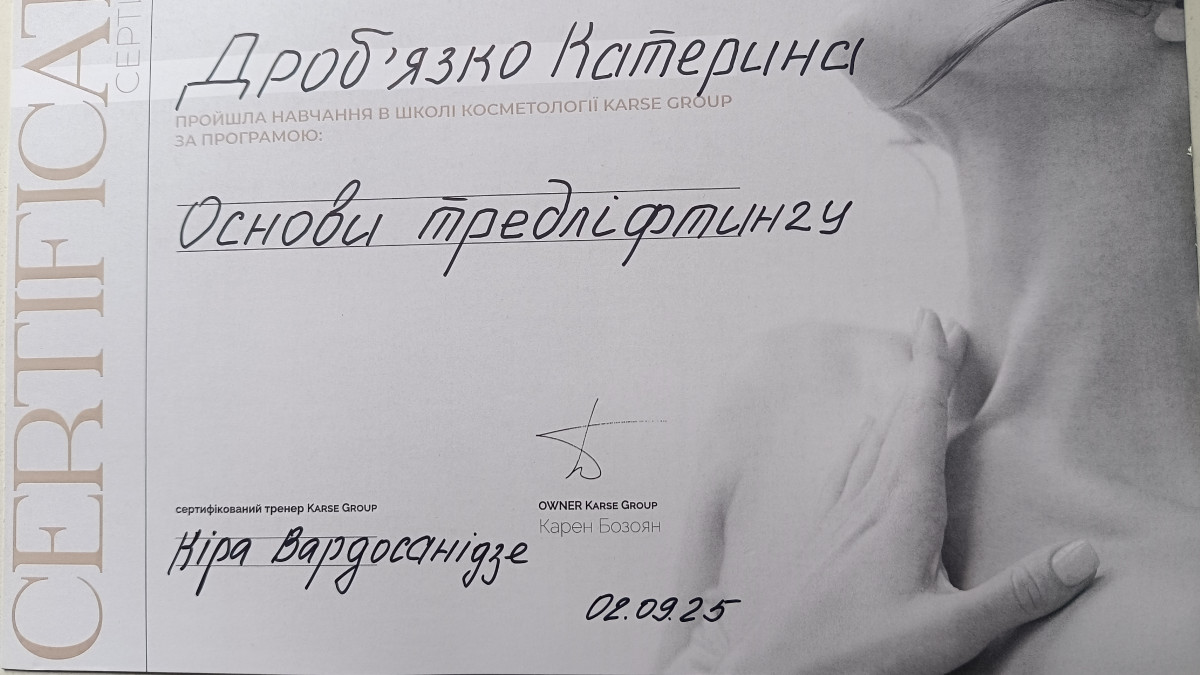 Основна спеціальність: Косметолог-естетист