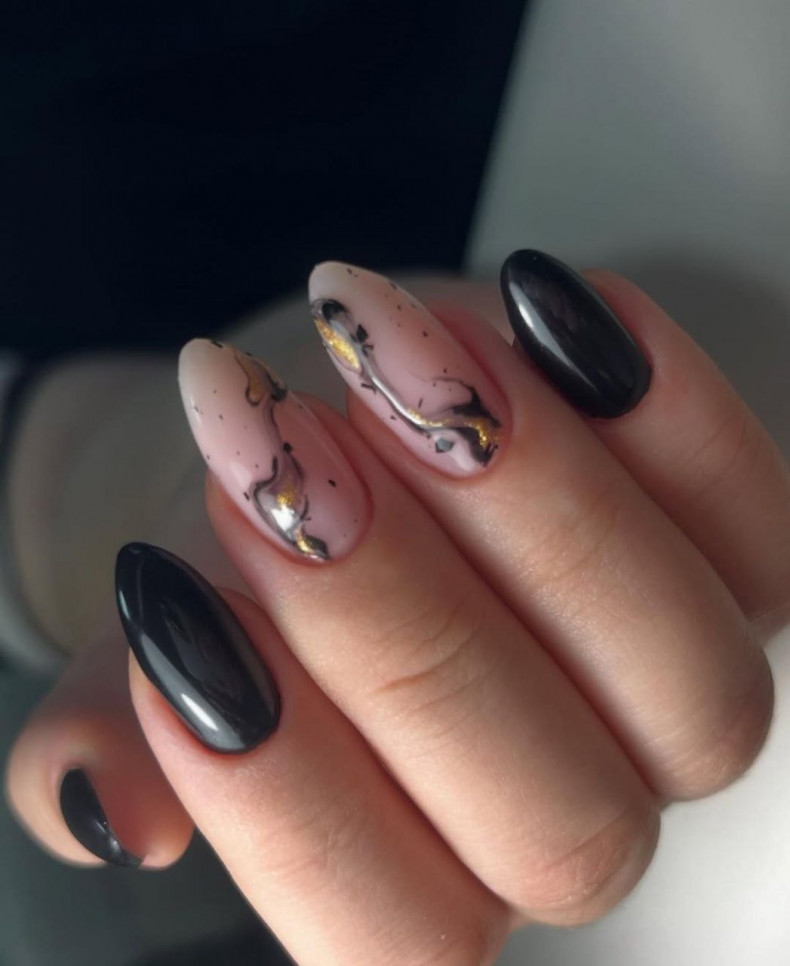 трендовий манікюр, манікюр на короткі нігті, оливковий манікюр, бежевий манікюр, манікюр бите скло