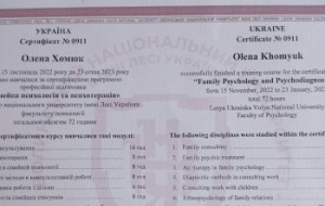 Сімейний психолог-консультант з 2012р.