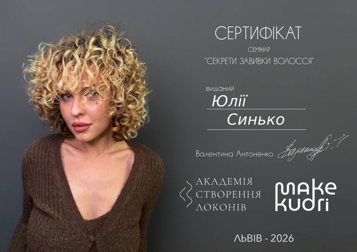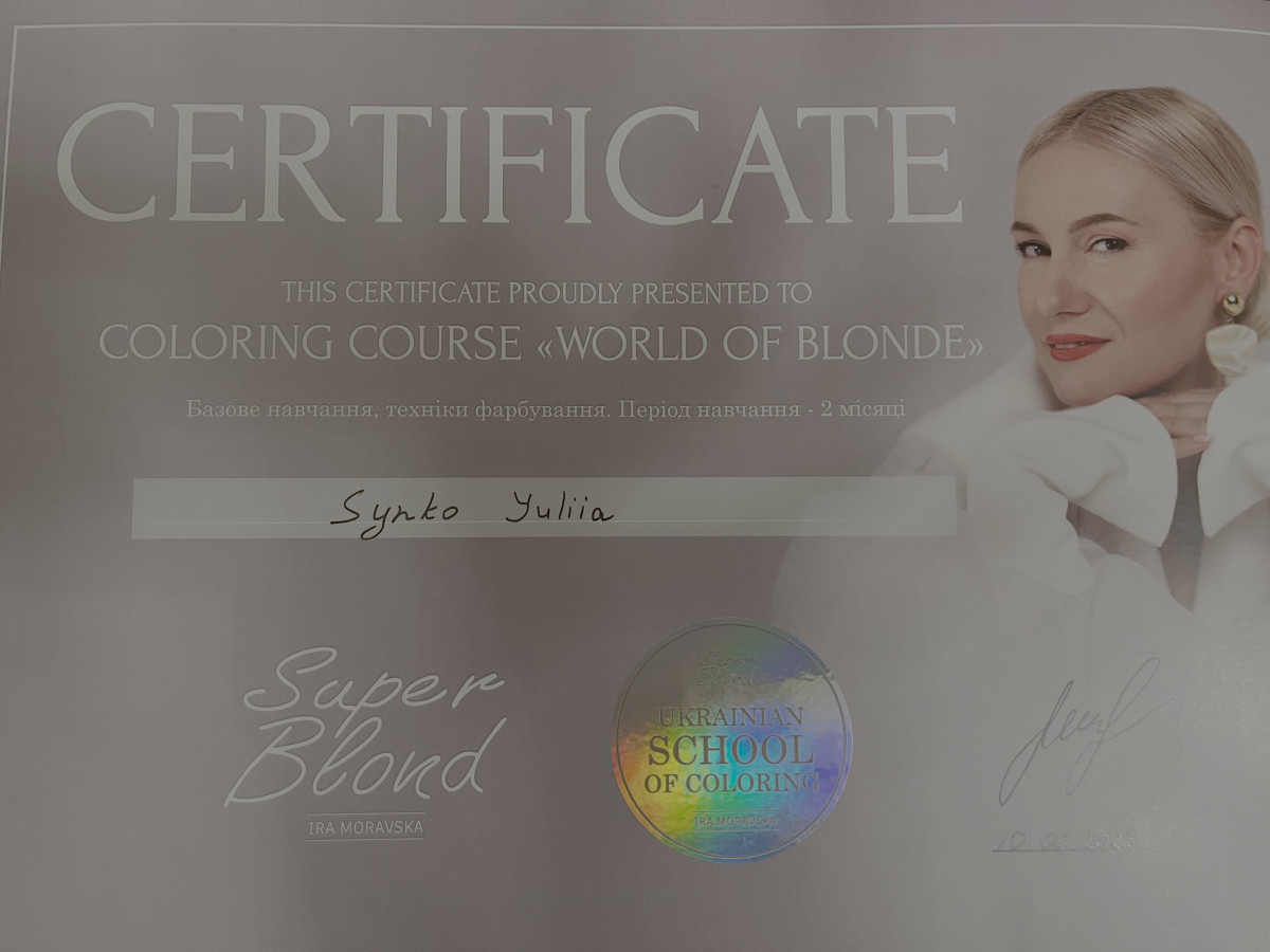 Щиро дякую майстру Юлії за неймовірну біозавивку! Робота виконана дуже професійно та з великою увагою до деталей результат справді перевершив усі мої очікування. Волосся виглядає доглянутим, живим і має чудову форму. Бажаю вам процвітання, натхнення у роботі та якнайбільше вдячних, позитивних і приємних клієнтів!