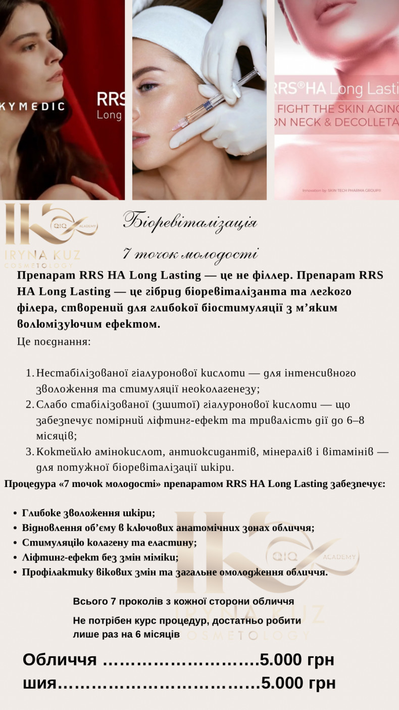 Це ін’єкційна методика, в якій препарат RRS HA Long Lasting вводиться не «папульним» способом по всій ділянці, а за 7 визначеними точками на обличчі.