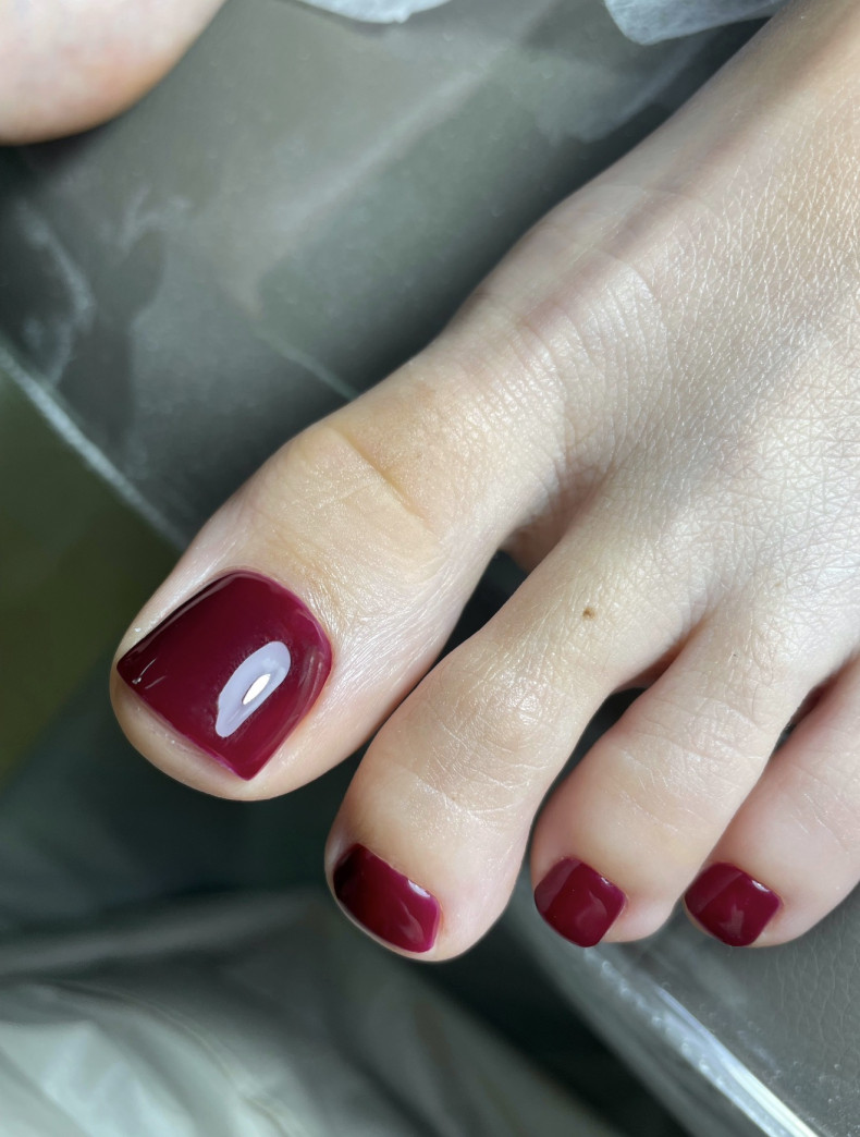 Комплекс педикюру включає в себе при наявності зняття попереднього покриття, чистка, однотонне покриття та обробка шкіри стопи.