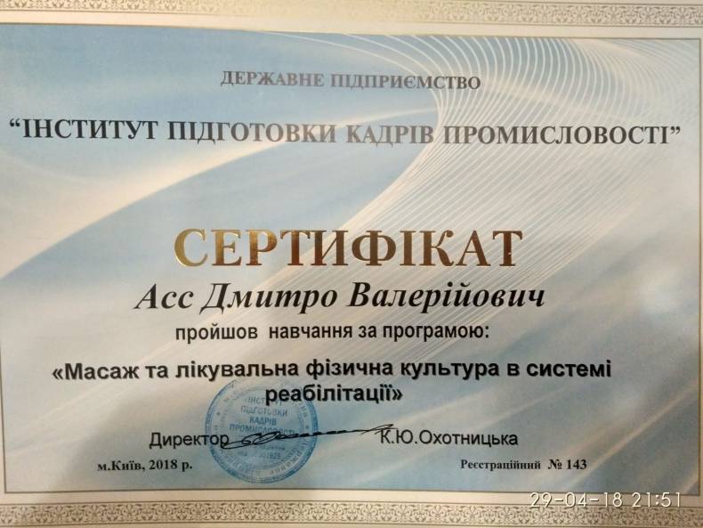 Додаткові спеціалізації: Масажист, дитячий масажист, реабілітолог, мануальний терапевт