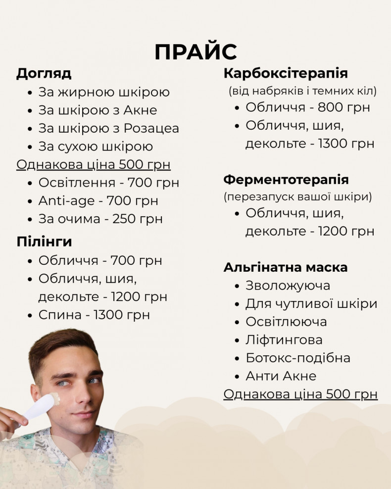 | Альгінатна маска | 700 грн. / 60 хв |
