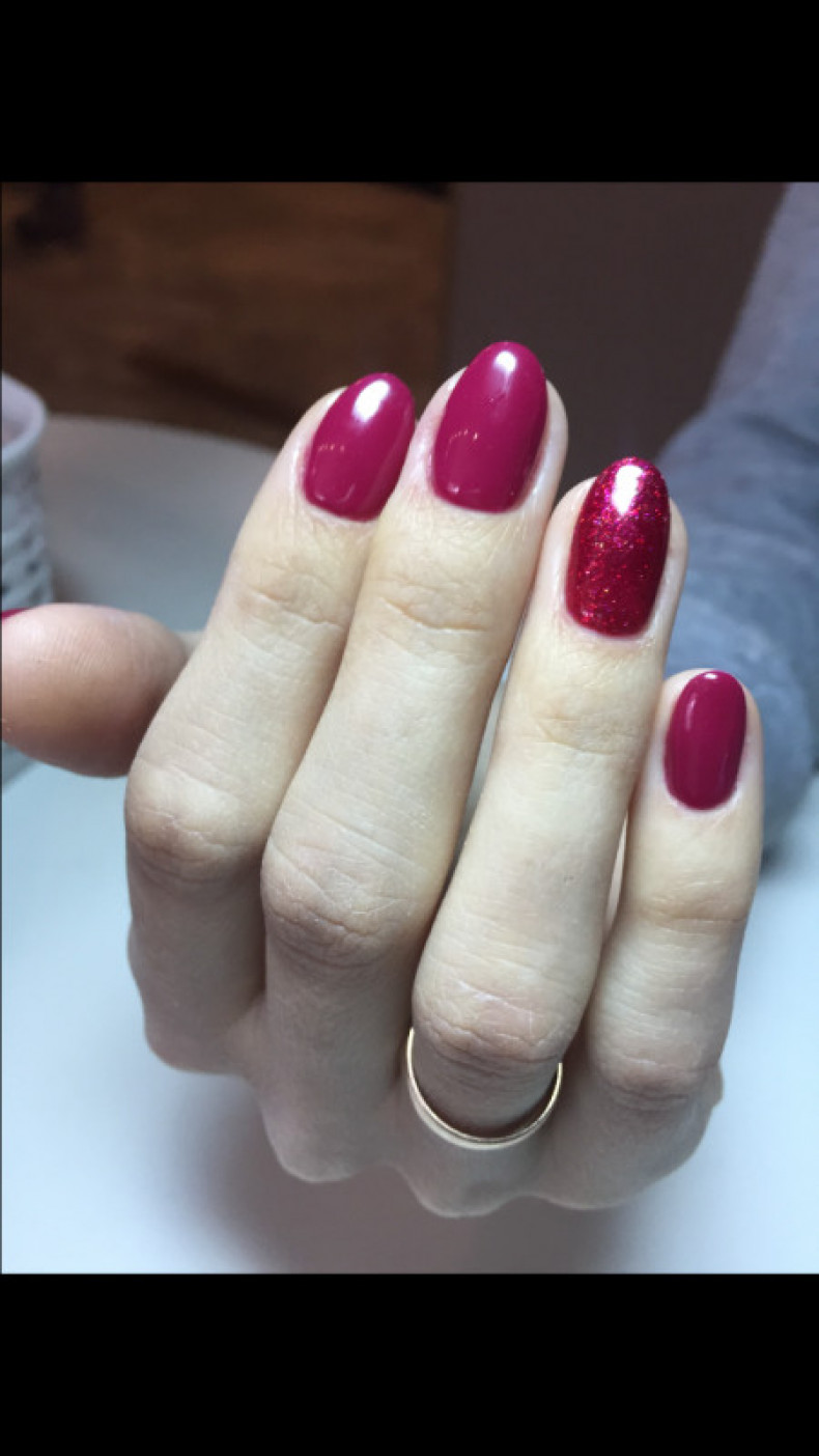 малиновий манікюр, манікюр з блискітками, френч манікюр, манікюр з акцентом на один ніготь, манікюр на короткі нігті 2024