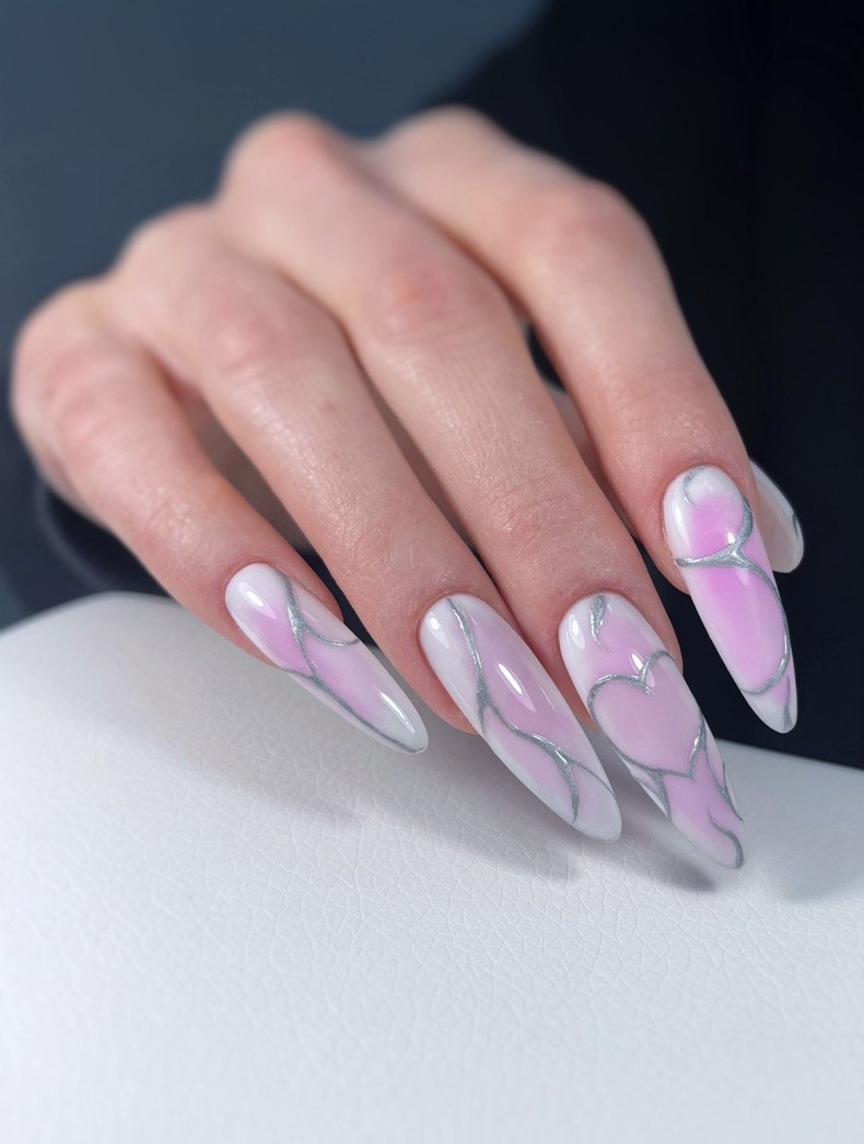 манікюр зі сріблом, манікюр зі стемпінгом, осінній манікюр, яскравий манікюр, манікюр на день закоханих