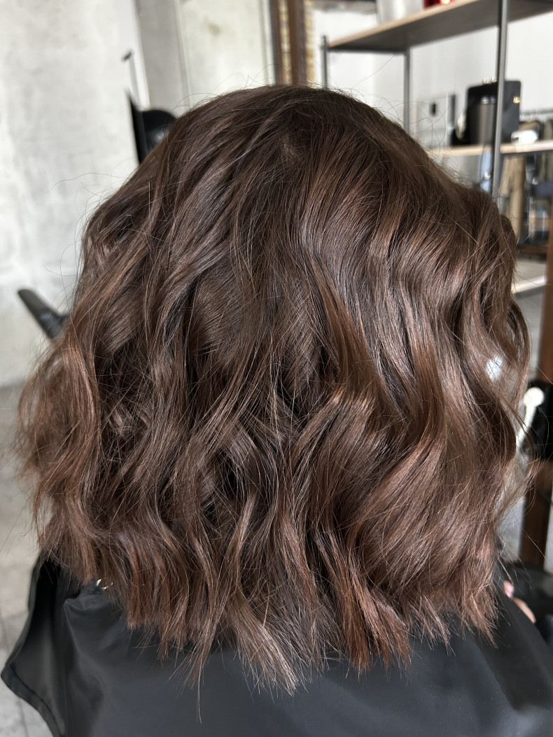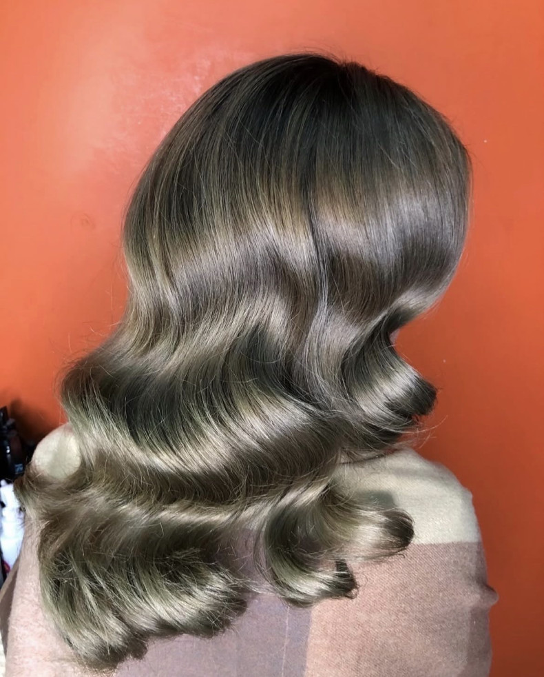 зачіска низький пучок, балаяж, ламінування волосся, укладка на середнє волосся, стрижка на середнє волосся