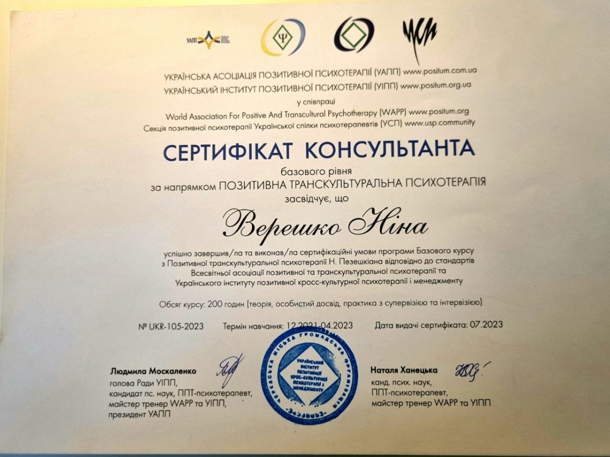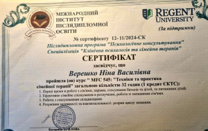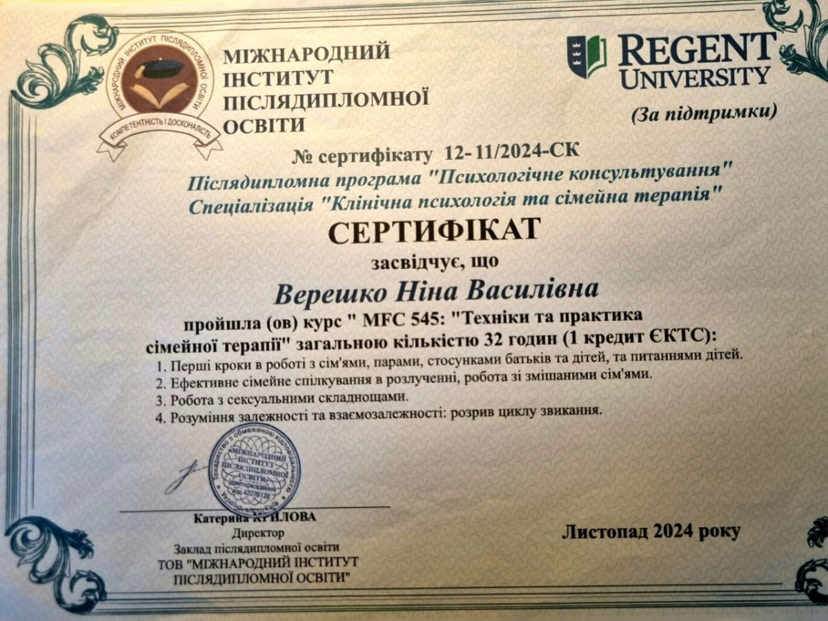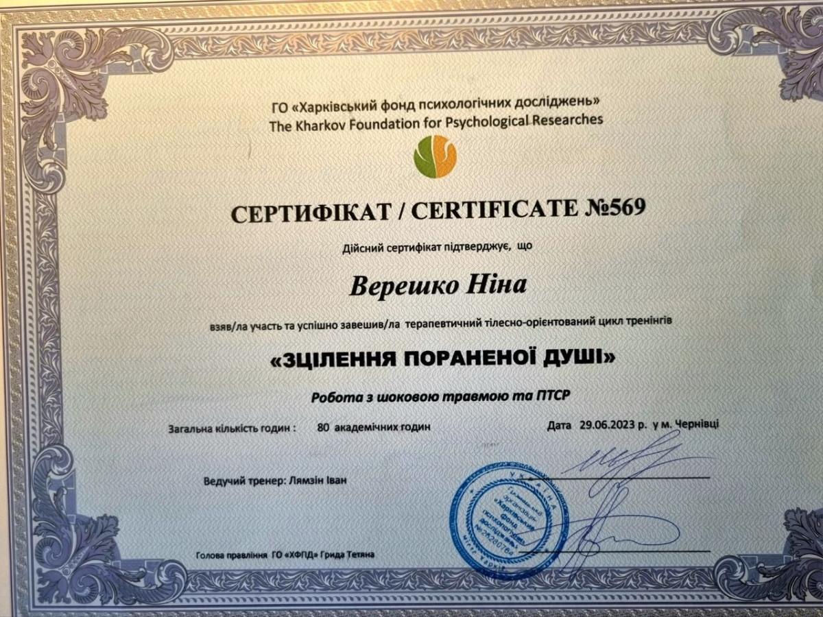 Додаткові спеціалізації: Підлітковий психолог, сімейний психолог