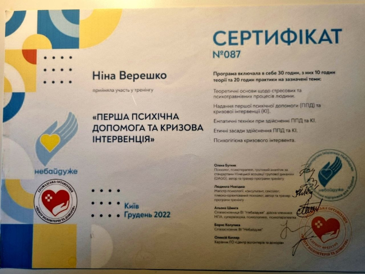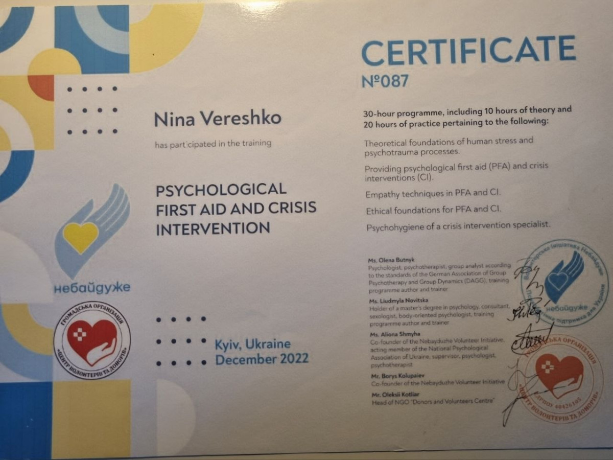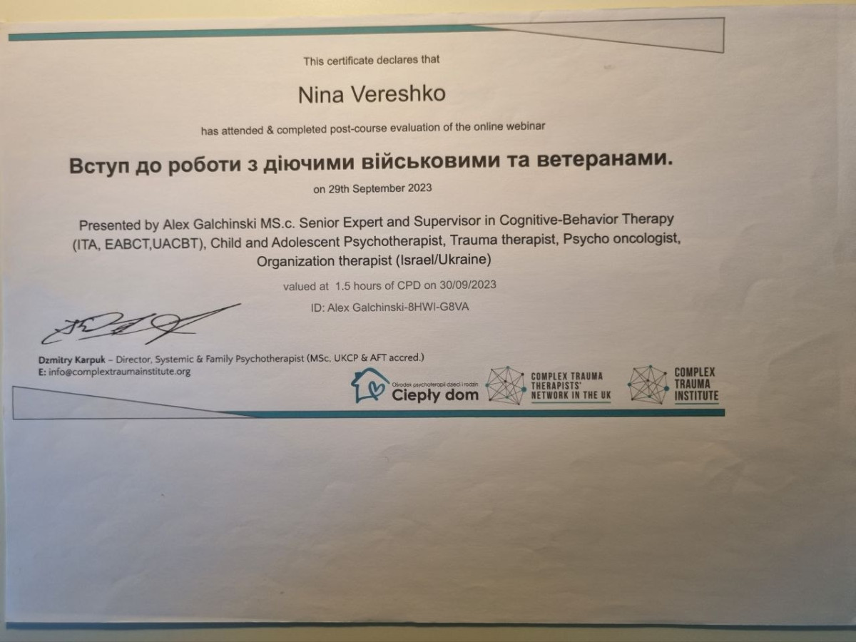 Додаткові спеціалізації: Підлітковий психолог, сімейний психолог