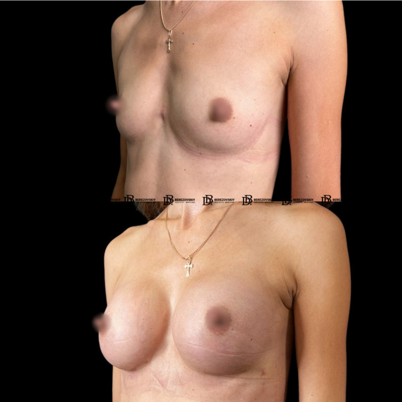 Розташування розрізів: навколо ареоли або ж в складці під грудьми. Імплант можуть встановлювати під залозу або під великий грудний м’яз.