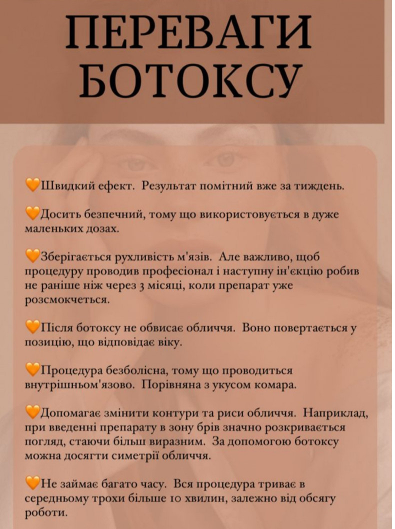 | Ботулінотерапія обличчя | 2000 грн. / 7000 хв |
