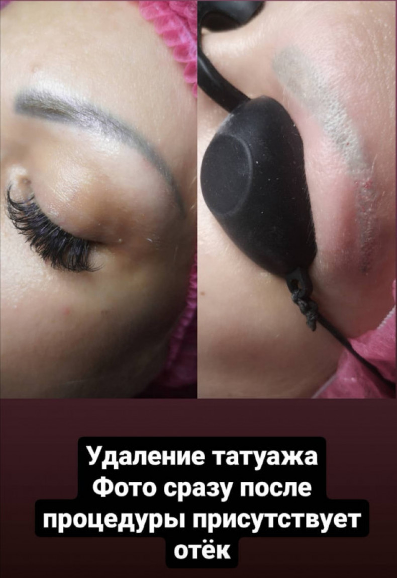 Поцедура удаления занимает 20 минут. 15 мин вы обезболеваетесь анестезирующим кремом и 2 минуты занимает сама процедура удаления. После процедуры пигмент приобретает тёмный и неравномерный оттенок (обычная реакция на выведение). В течении 7-10 дн брови могут менять цвет. По истечении недели пигмент стабилизируется и начинается высветление.