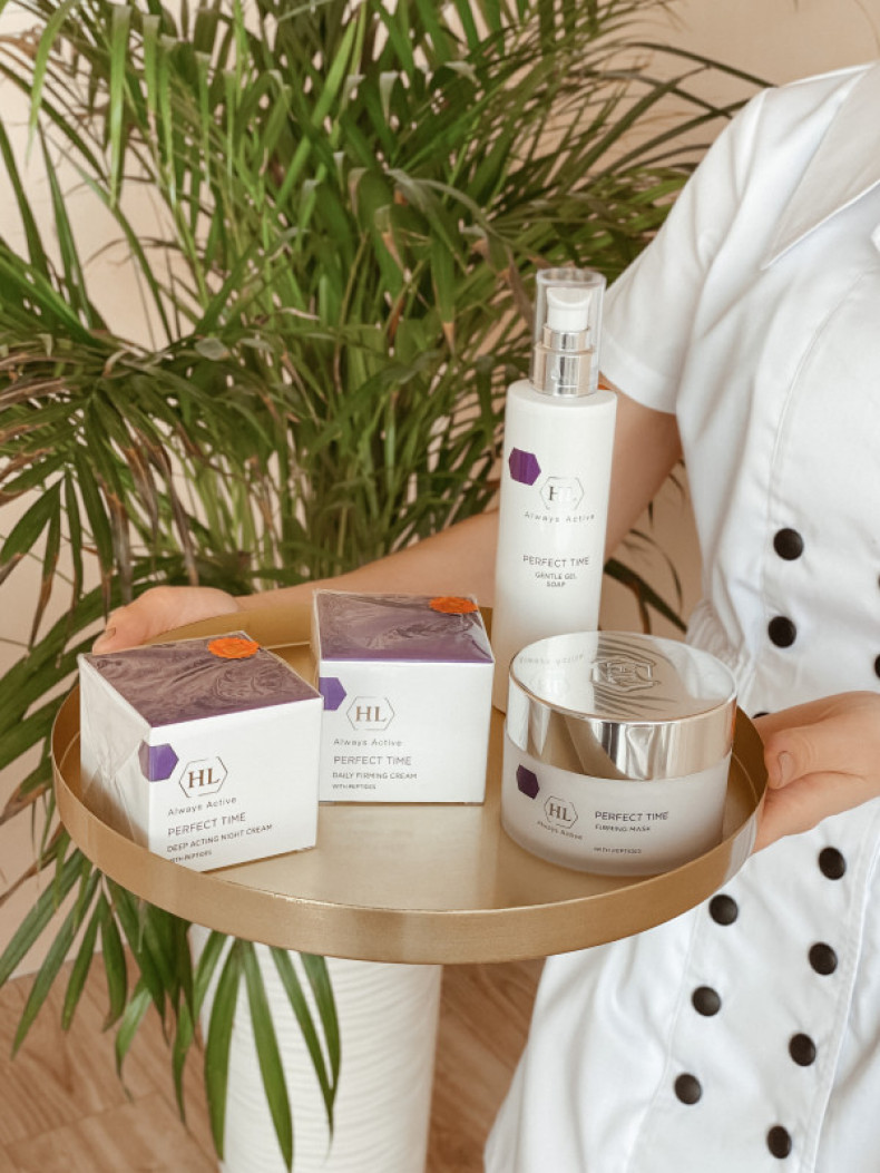 Perfect time - это высокоэффективная линия, которая удовлетворяет потребности зрелой кожи. Препараты основаны на высококачественных ингредиентах инновационных липопептидах и незаменимых аминокислотах, которые способствуют уменьшению глубины морщин и разглаживают кожу. Кроме того, укрепляют контур лица, шеи, декольте, моментальное устраняют чувство дискомфорта, приподнимает "растянутые" участки кожи, что придает чертам лица четкость и омолаживает их, моделируют овал лица обеспечивая коже более свежий и молодой вид.