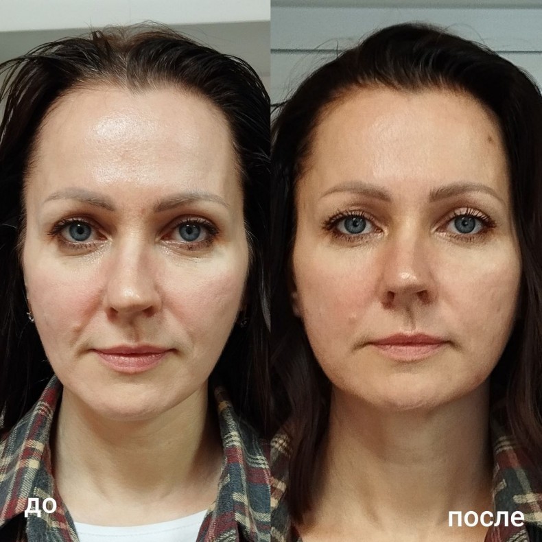 Заметно уменьшилась глубина морщин и носогубных складок. Скорректирован овал лица. Уменьшилась отечность.