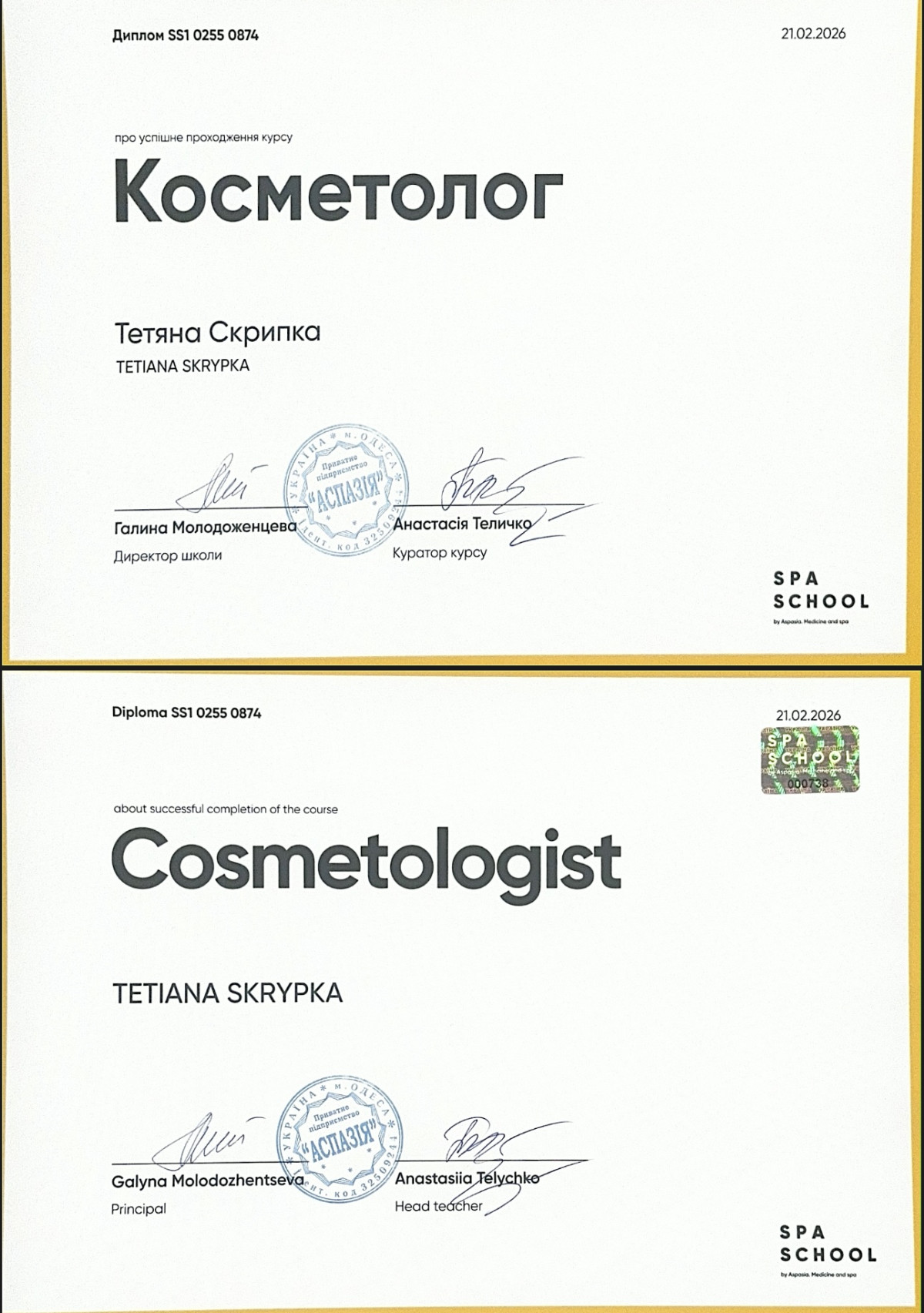 Основна спеціальність: Косметолог-естетист