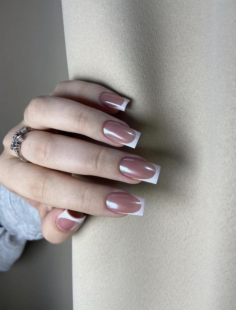 простий манікюр, манікюр квадрат, манікюр з листочками, манікюр ялинку, бежевий манікюр