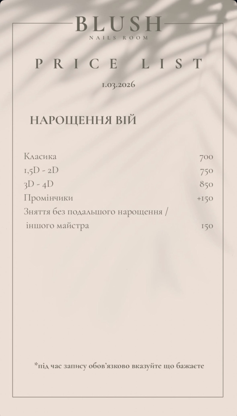 | Нарощення вій | 700 грн. / 120 хв |