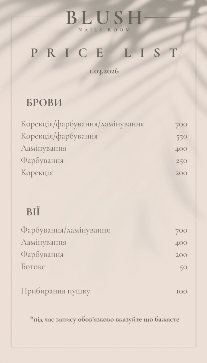 Ключові послуги: оформлення брів та вій, нігтьовий сервіс, догляд за стопами