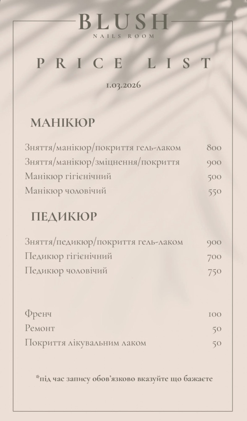 | Нігтьовий сервіс | 500 грн. / 30 хв |
