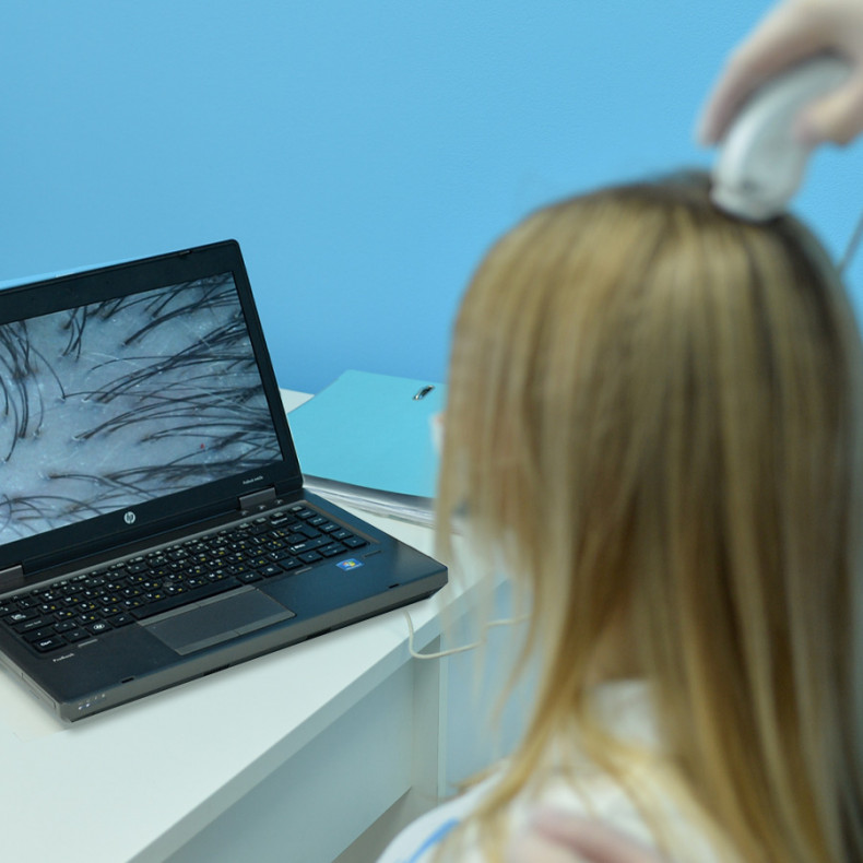 Медичний центр в Рівному пропонує сучасні комп'ютерні технології дослідження шкіри голови і волосся, одним із яких являється трихоскопія. Проведення методу передбачає використання трихоскопа, який являє собою невеликий пристрій з відеокамерою, оснащеною новітньою оптикою, що забезпечує багаторазове збільшення зображення. При цьому отримані дані транслюються на комп'ютерний монітор.