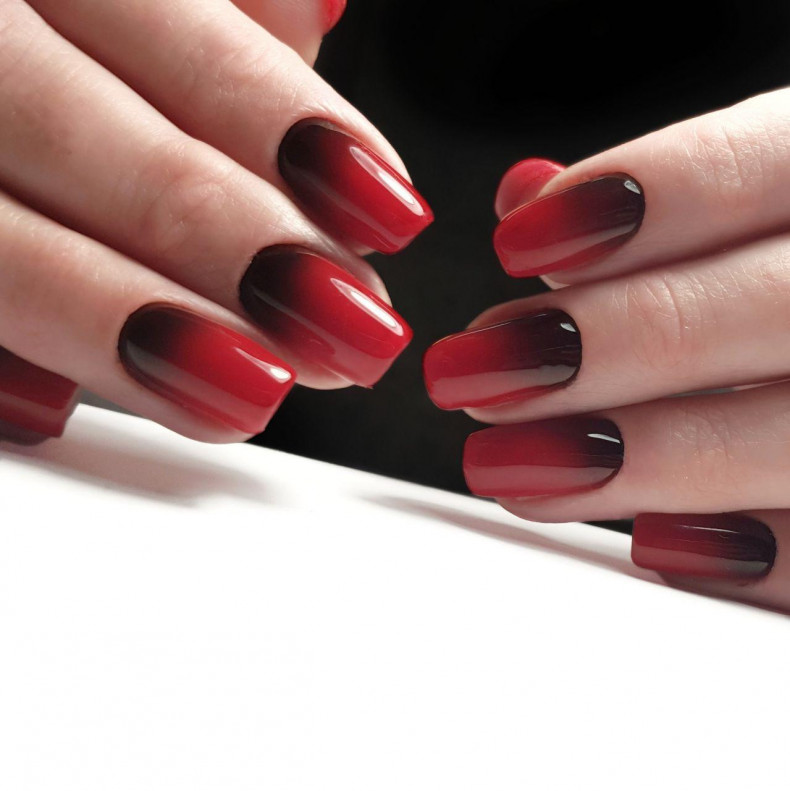 Омбре. У цьому виді градієнтного манікюру використовуються різні відтінки одного кольору, створюючи плавний перехід від світлого до темного. Наприклад, можна використовувати світло-рожевий, рожевий та темно-рожевий відтінки для створення омбре-градієнта на нігтях.