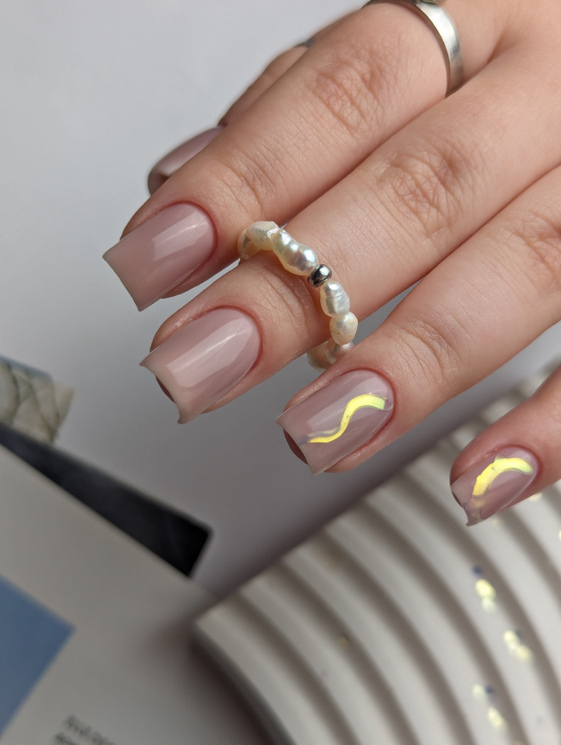 Кавовий манікюр на короткі нігті ефектний у разі використання світлих відтінків, комбінації тонів класичної кави з кремовою гамою. Коричневий колір з мінімалістичним візерунком – теж вдалий варіант.