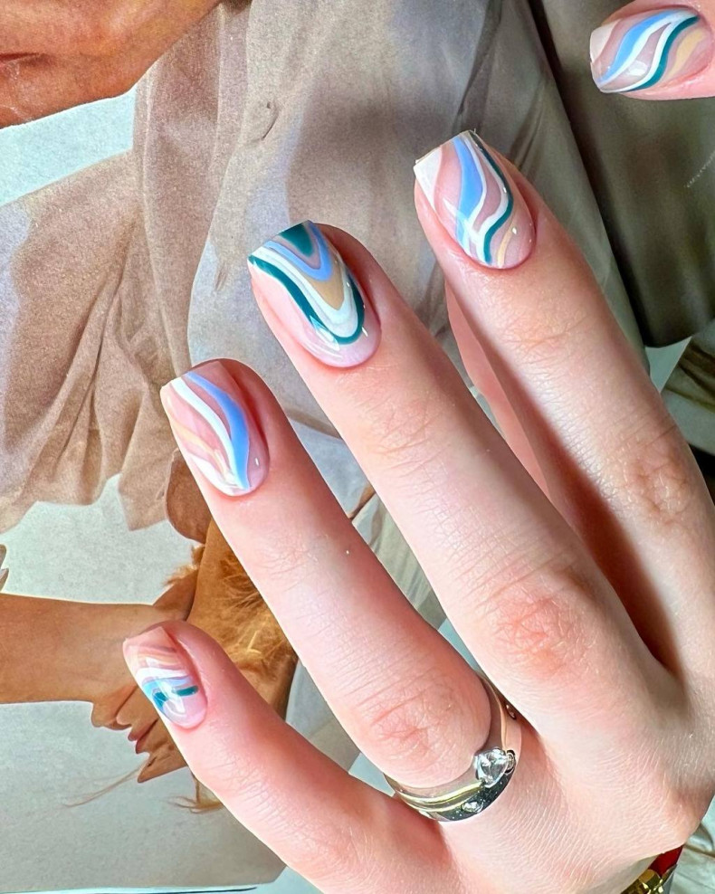 Абстрактні форми: Використовуйте лінії різної довжини та напрямки для створення абстрактного та хаотичного дизайну на нігтях.