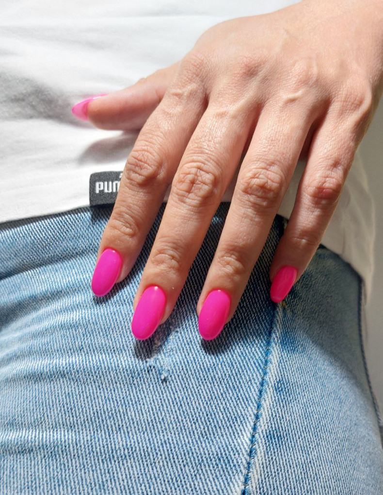 Однотонний рожевий: Нанесіть однорідне рожеве покриття на всі нігті. Виберіть відтінок рожевого, який вам подобається - від світлого та ніжного до яскравого та яскравого.