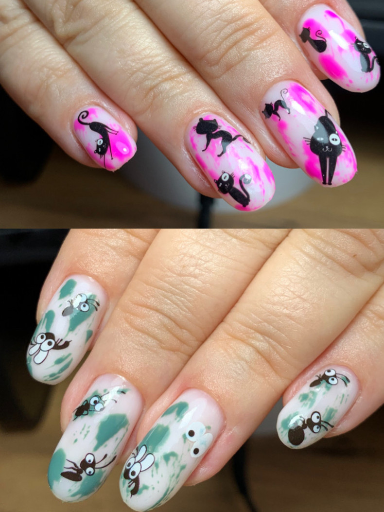 Наклейки та стемпінг: За допомогою наклейок або спеціальних штампів ви можете швидко та акуратно нанести складні малюнки.