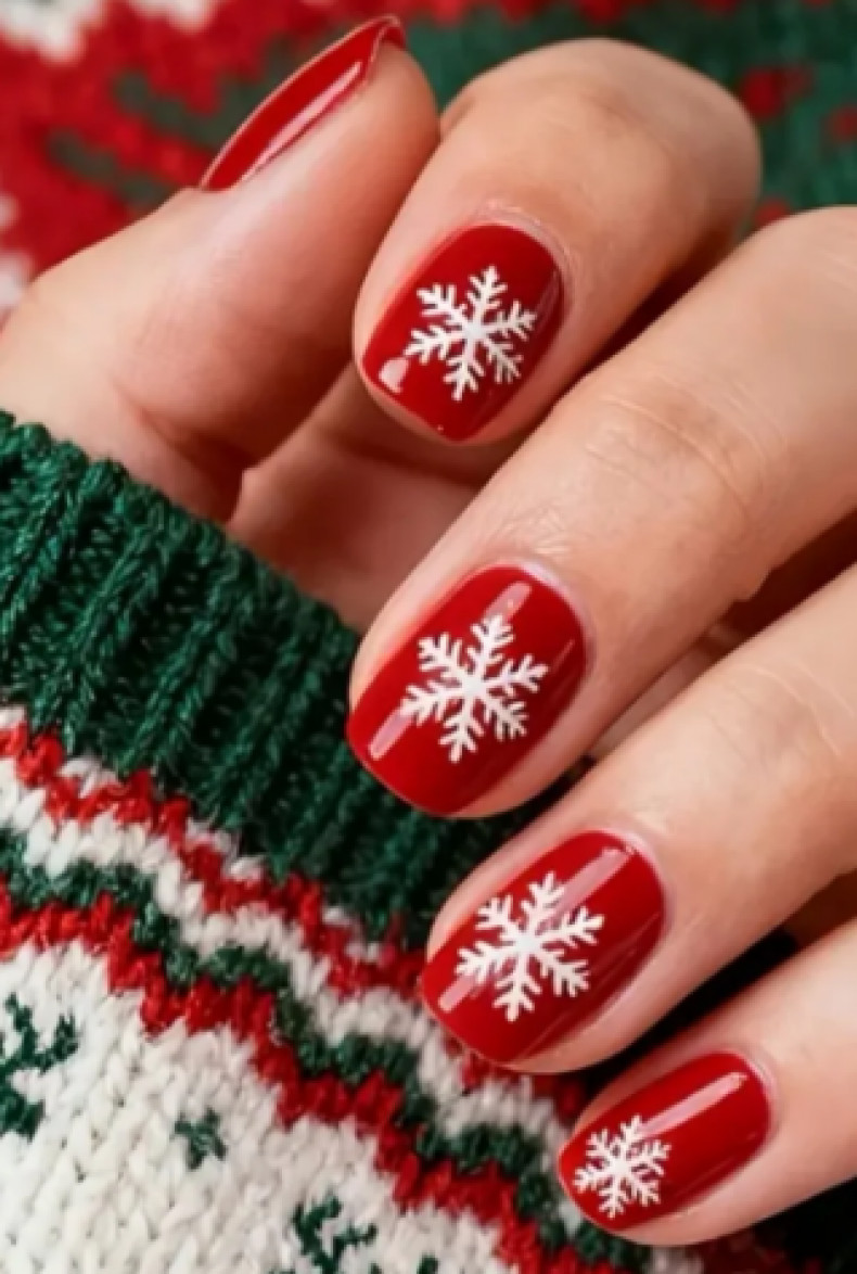 Нігтики, прикрашені сніжинками, створюватимуть гармонію з природою, яка взимку ховається під білим покривалом. У тренді червоний або білий манікюр із сніжинками, створеними із стильних декоративних елементів: