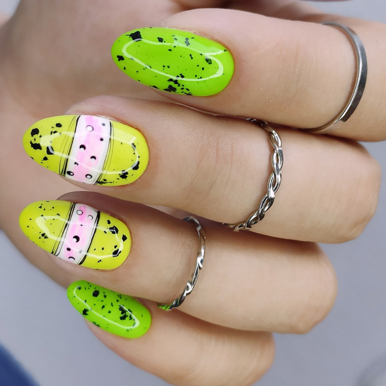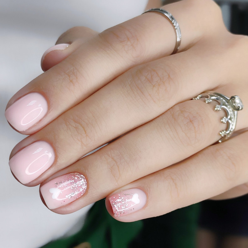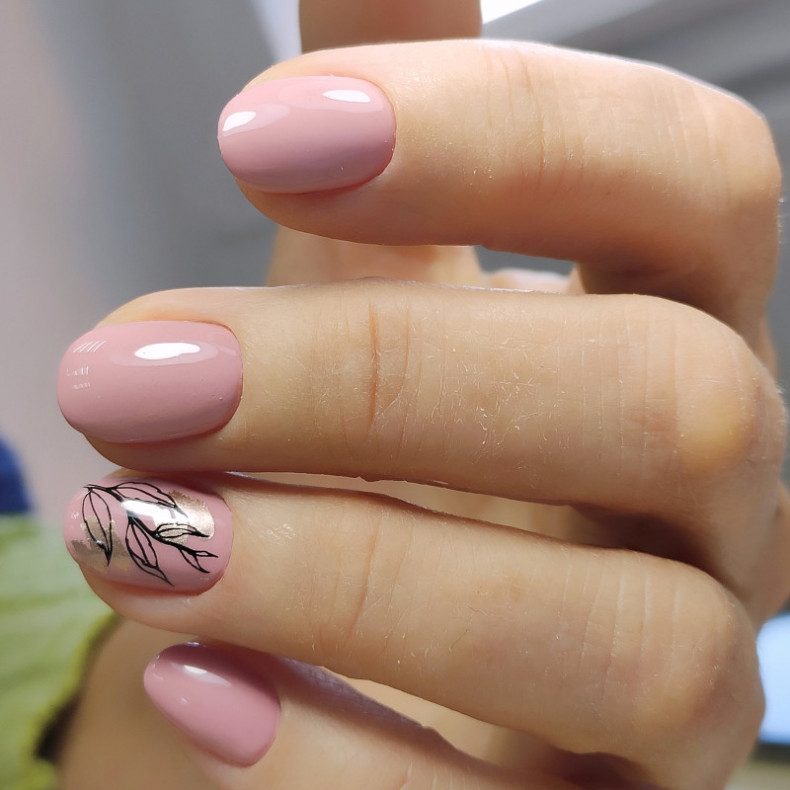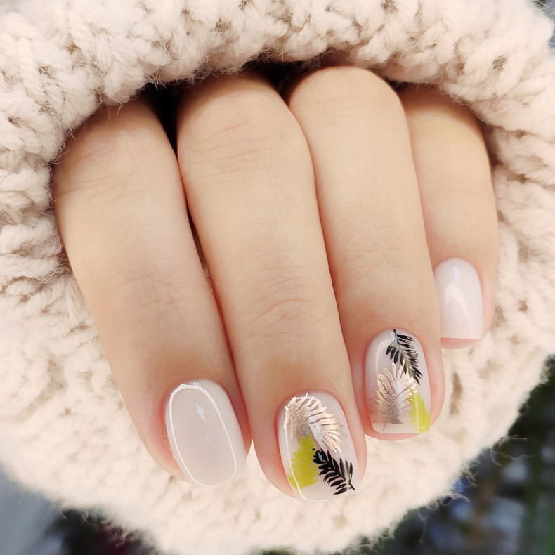 однотонний манікюр, манікюр з листочками, блискучий манікюр, прозорий манікюр, манікюр з квітами