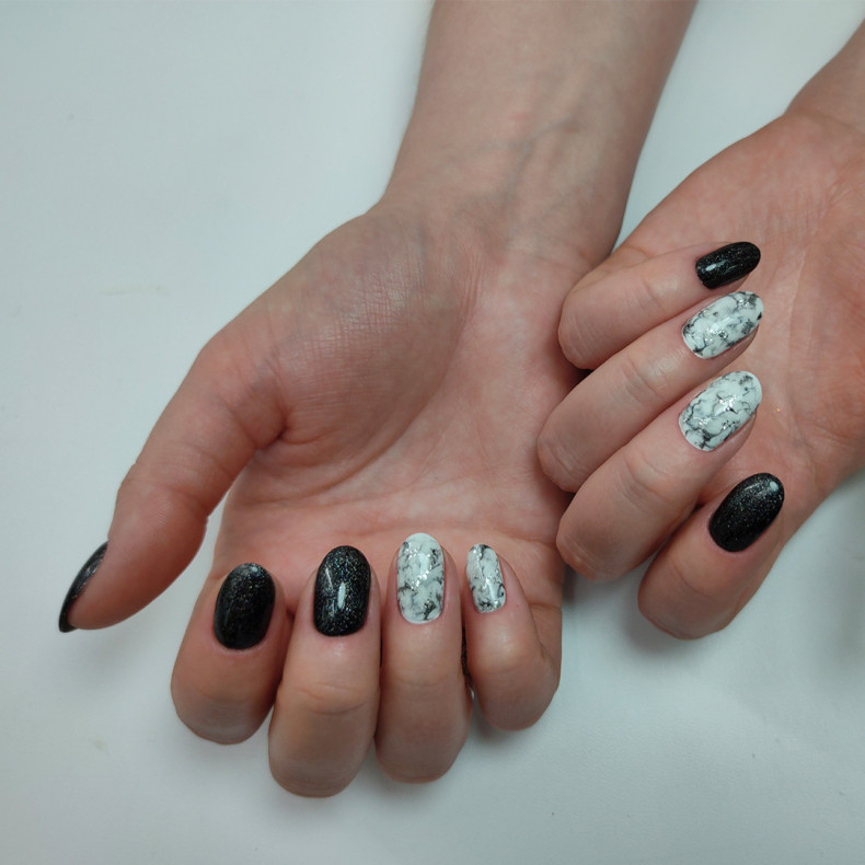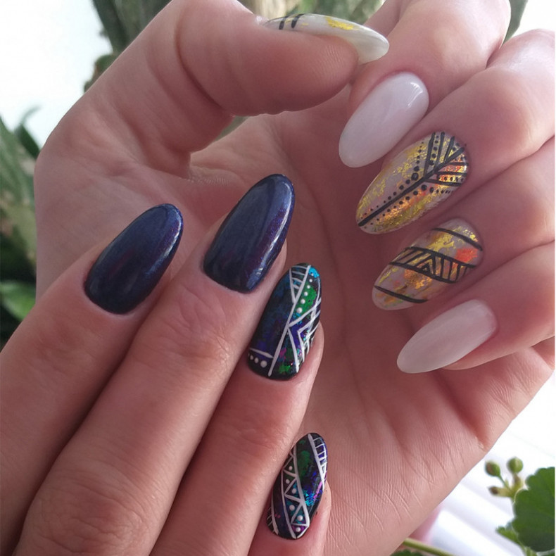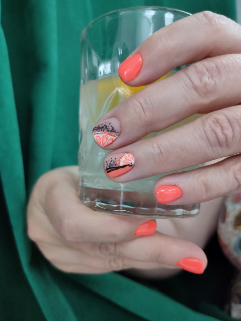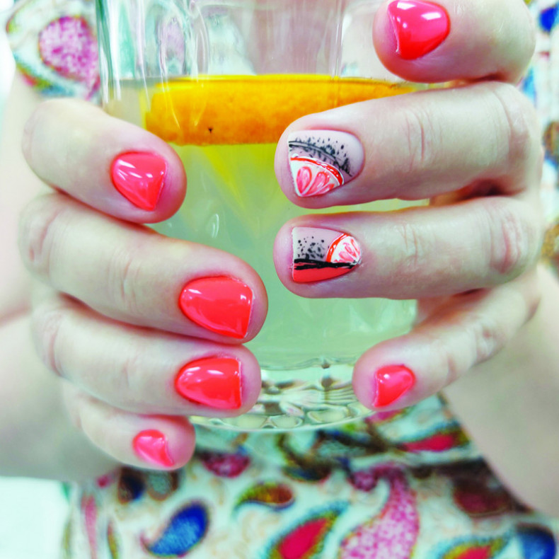 світлий манікюр, кораловий манікюр, манікюр із чорним лаком, манікюр з візерунком, винний манікюр