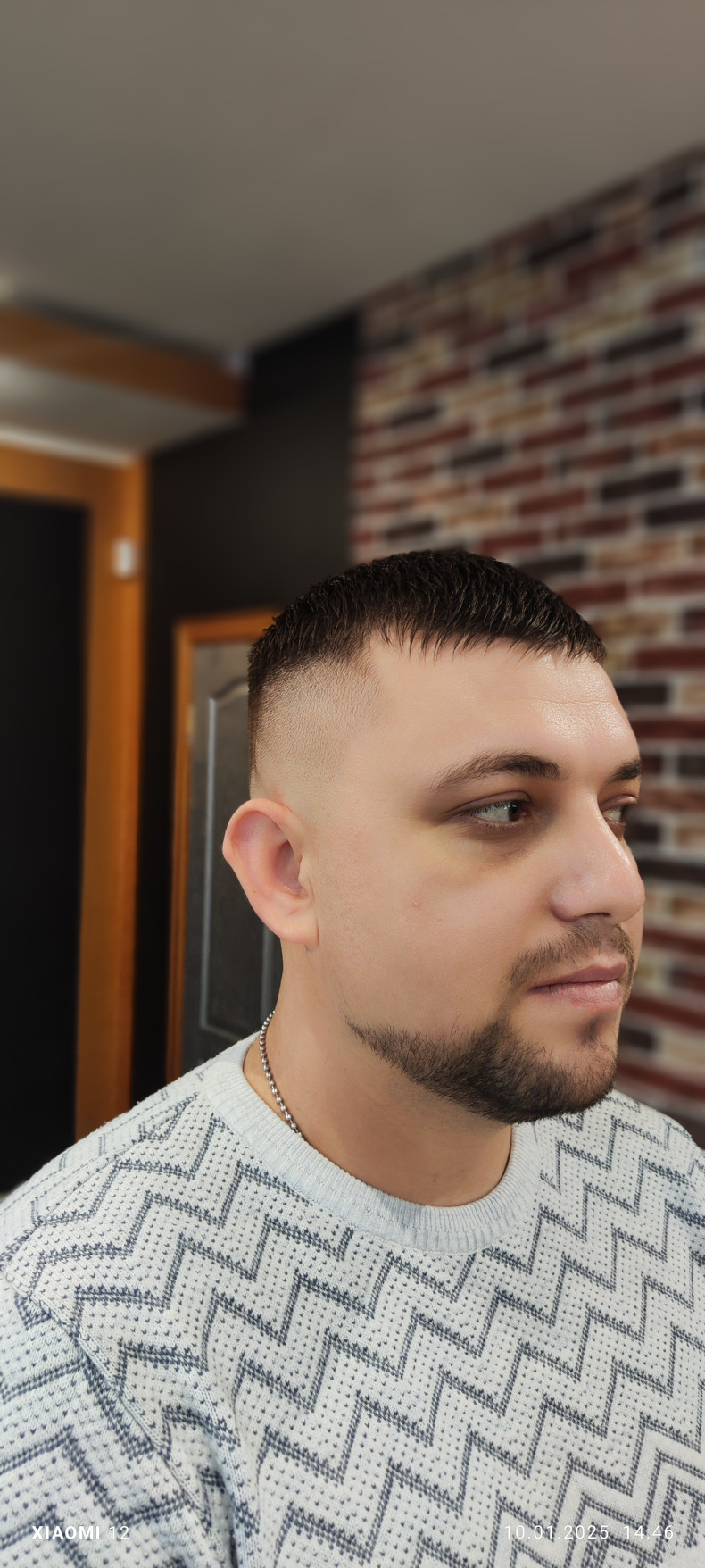 Коротка стрижка кроп з акуратним переходом відмінно підкреслює риси обличчя і підходить для густого і жорсткого волосся. Плавний перехід на скронях і потилиці робить її стриманою та стильною, а мінімальна довжина забезпечує комфорт при активних тренуваннях.