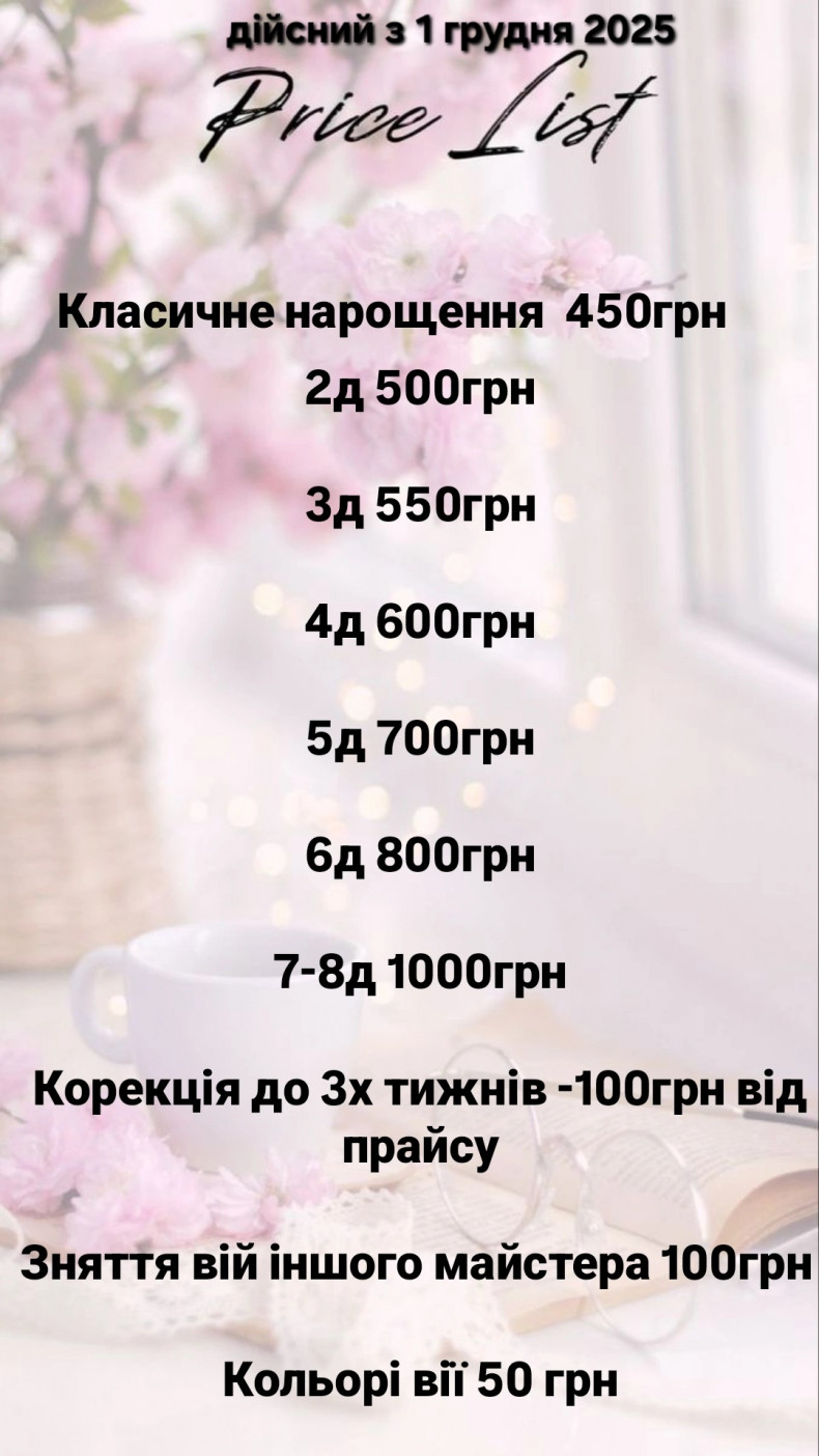 | Нарощення вій | від 450 грн. / 120 хв |