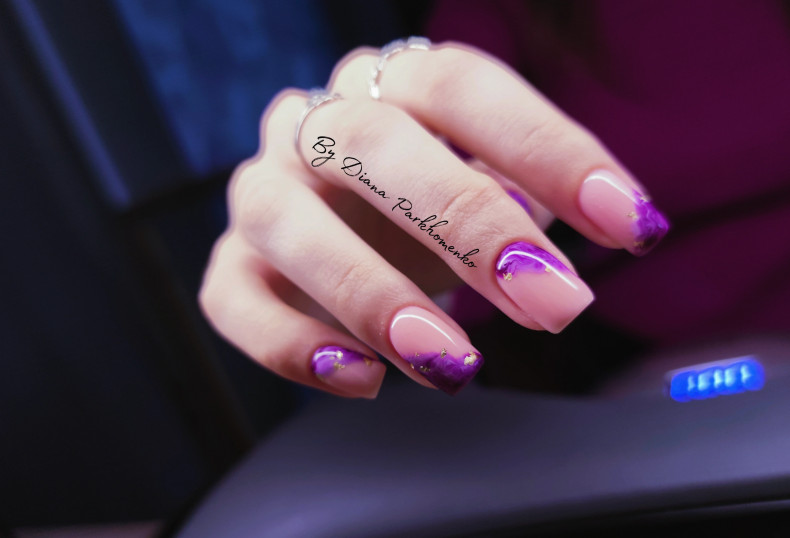 ніжні нігті, фіолетовий манікюр, манікюр 2024, блакитний манікюр, втирка