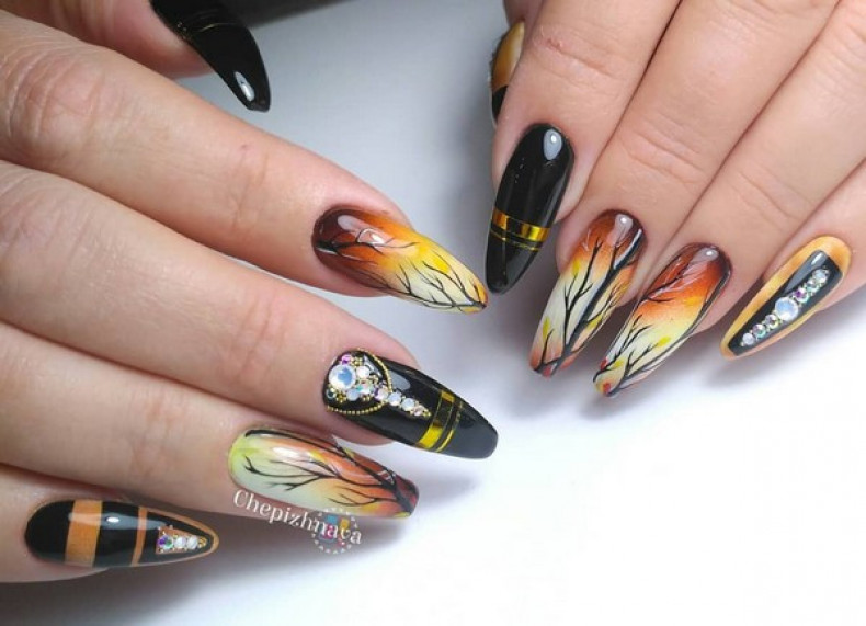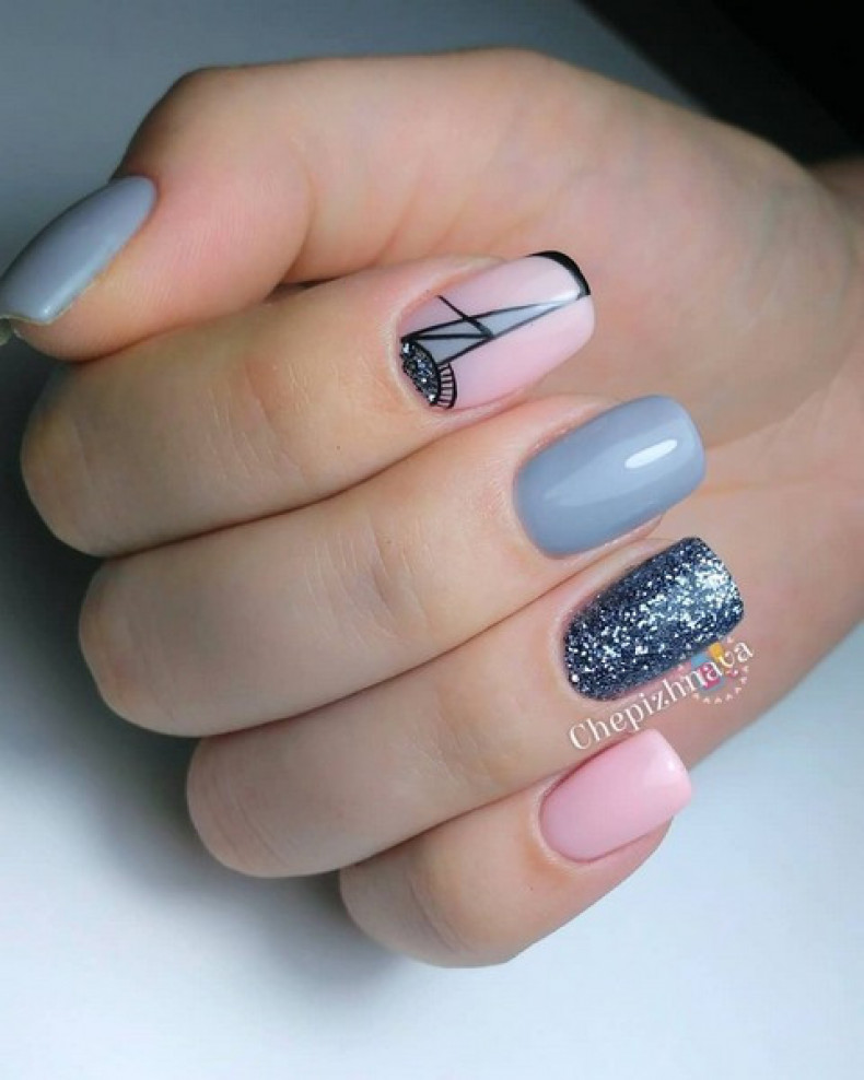 манікюр бите скло, простий манікюр, манікюр із золотом, корекція нігтів, абстракція манікюр