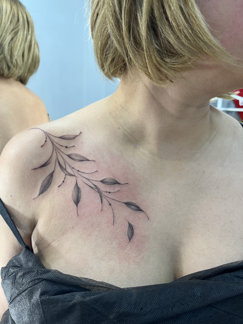 - Ключиця - не найболючіша ділянка для тату і невелика в порівнянні з іншими місцями. Сеанс нанесення відбувається швидко і майже без болю.